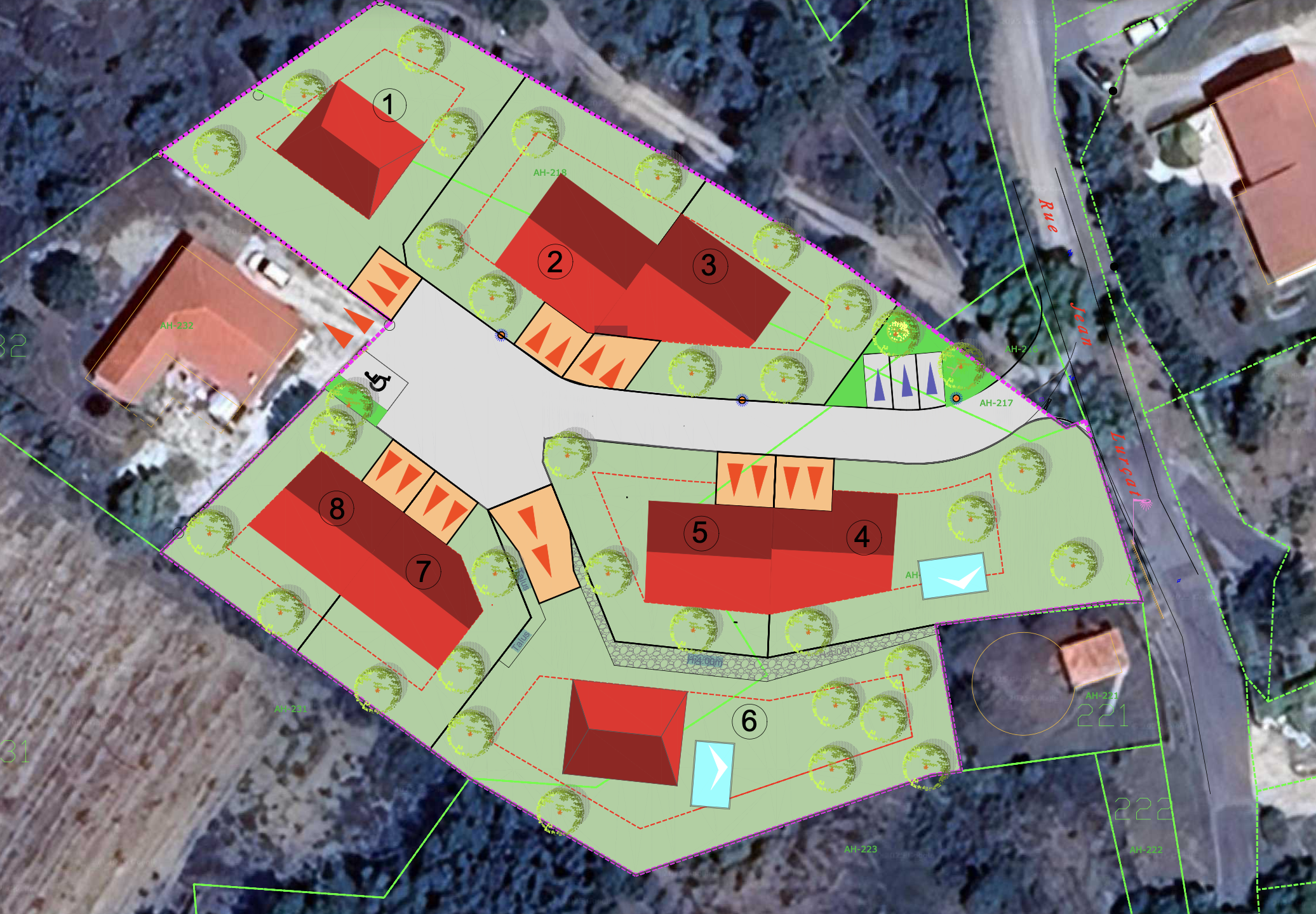 8 terrains constructibles : 300 à 870 m², bien exposés